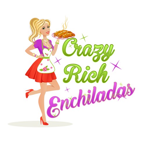 Crazy Rich Enchiladas — Jane Jetson/Socialite figure with fancy apron and jewelry selling Enchiladas